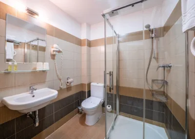 • koupelna se sprchou, fén na vlasy, WC